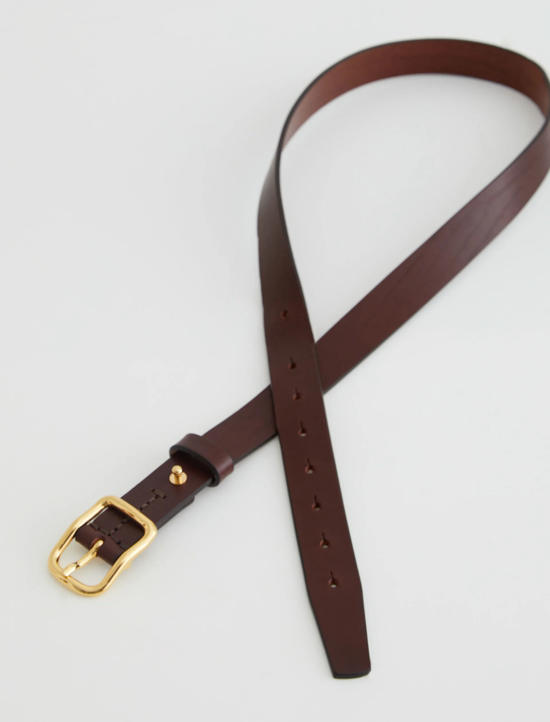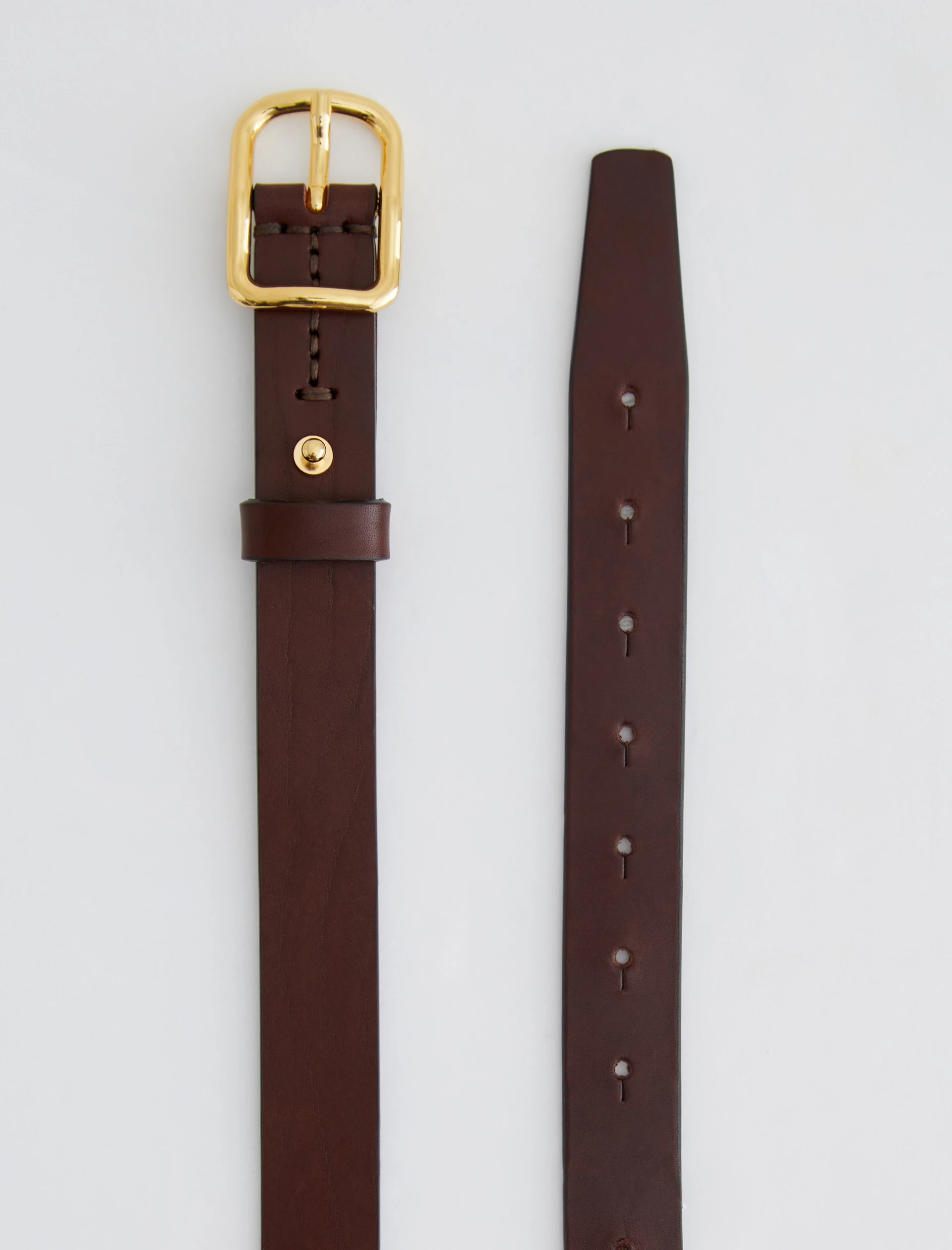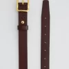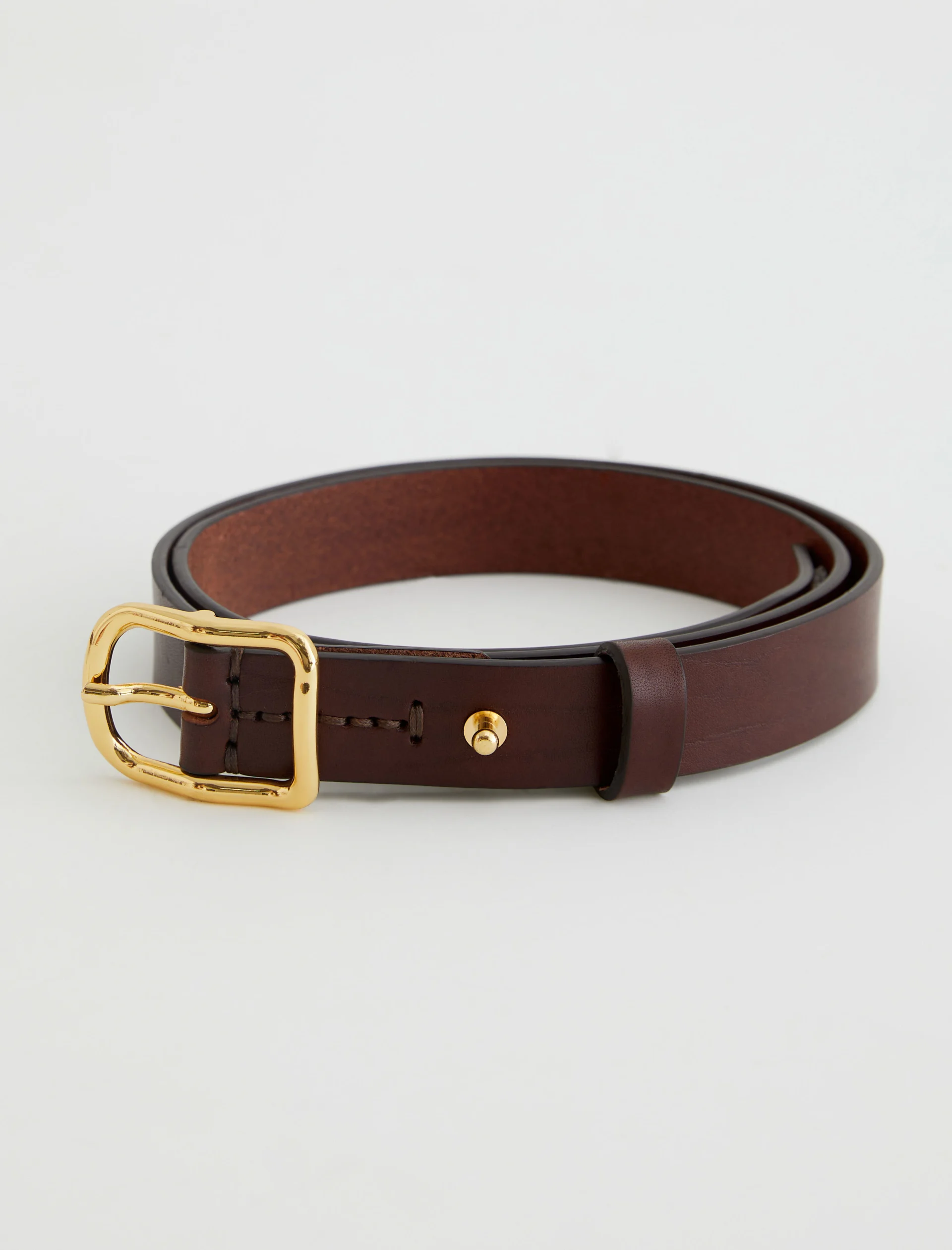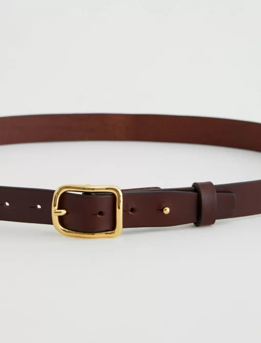 A slim style cut from supple Italian leather, the Marisol women’s belt is a timeless finishing touch to your outfits. It’s done here in brown and fastened by a gold-tone buckle with an anchored stud.