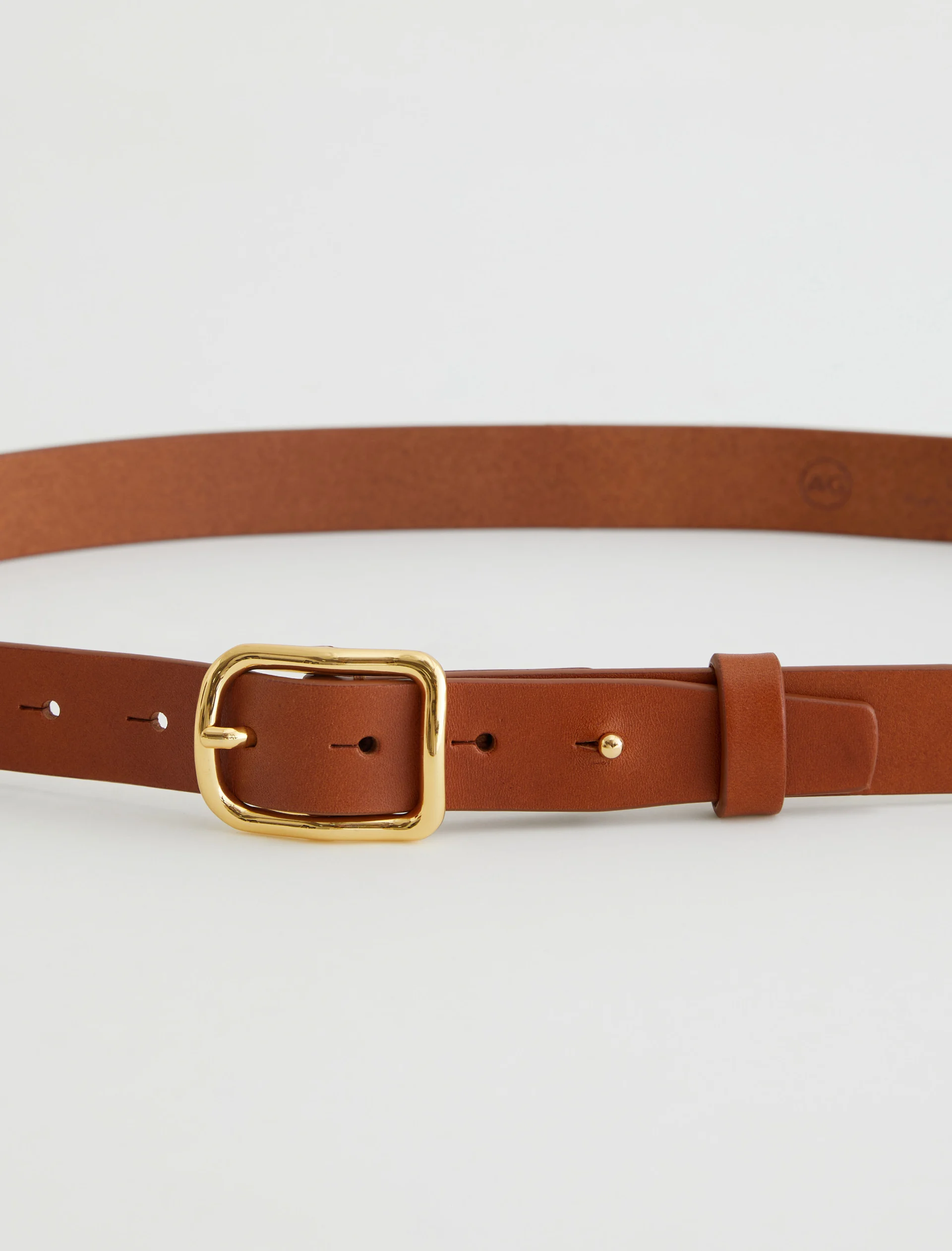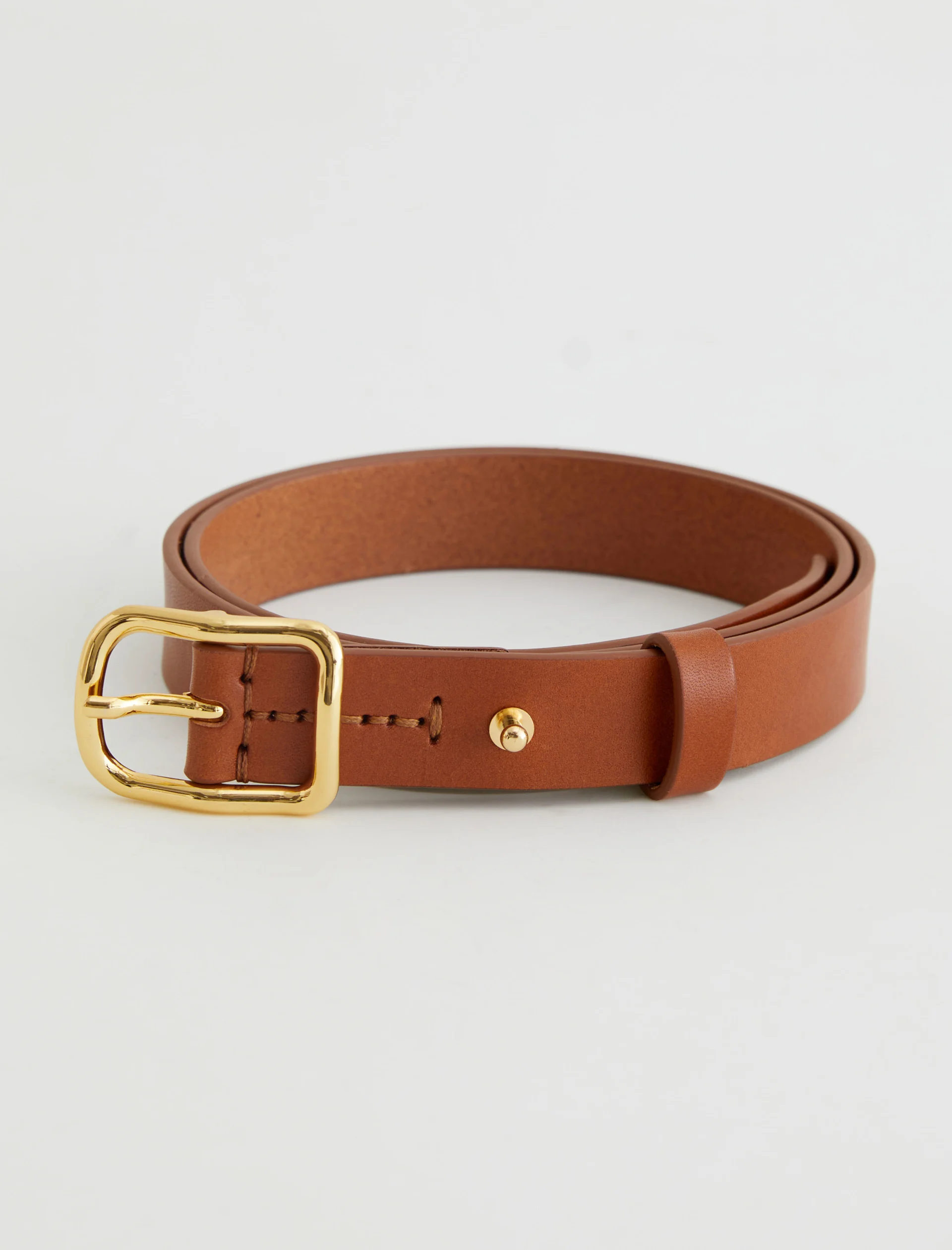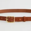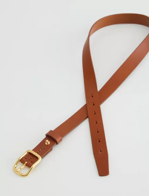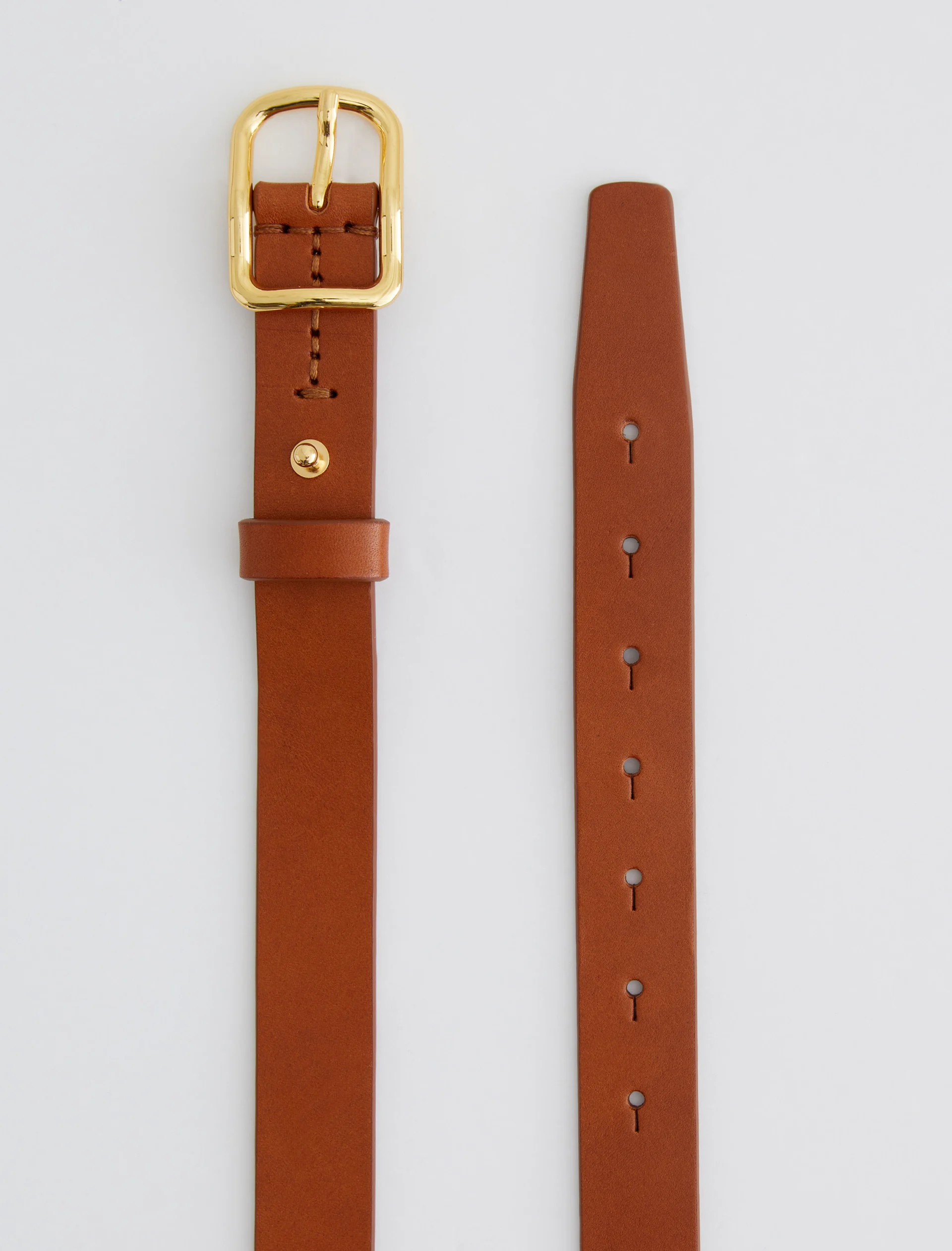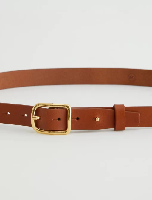 A slim style cut from supple Italian leather, the Marisol women’s belt is a timeless finishing touch to your outfits. It’s done here in camel and fastened by a gold-tone buckle with an anchored stud.
