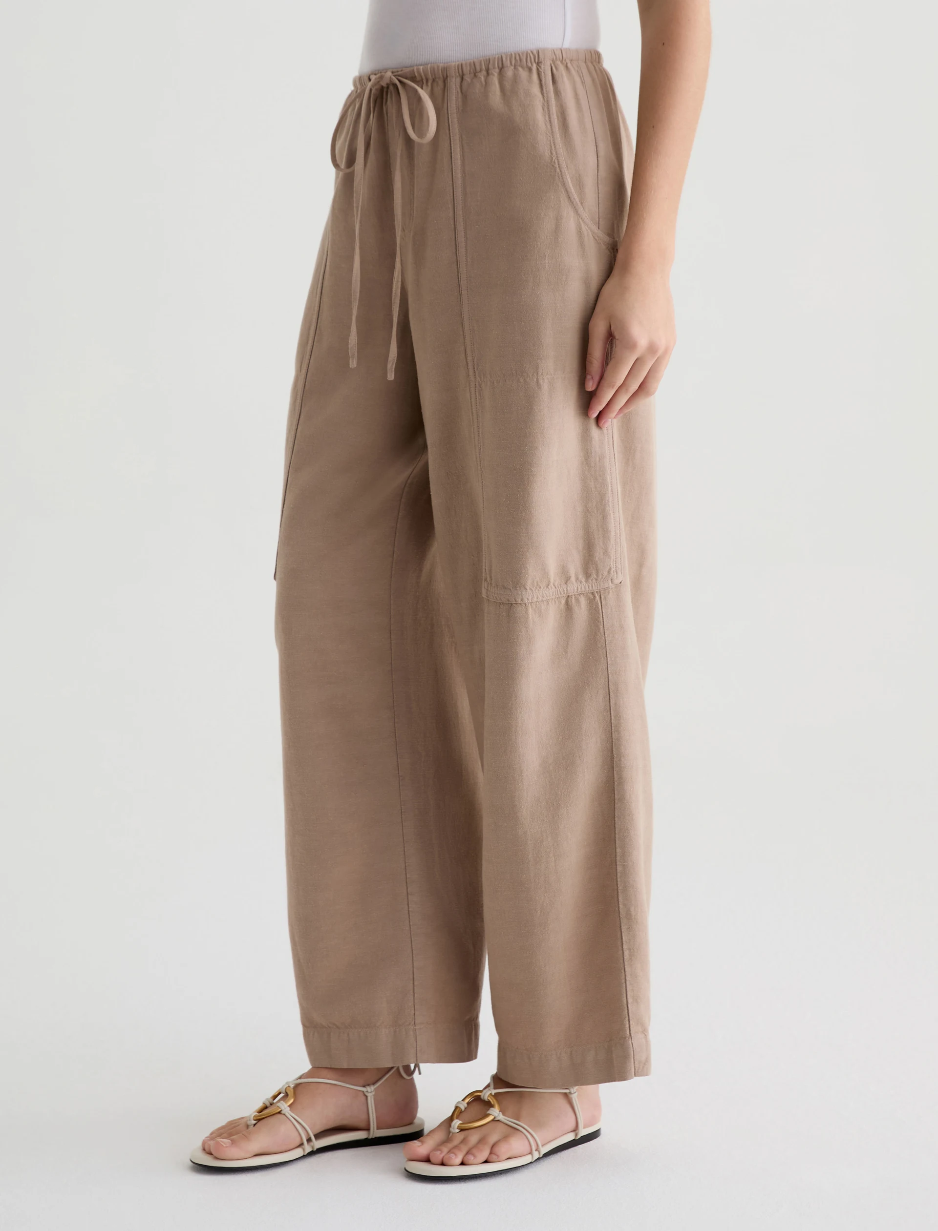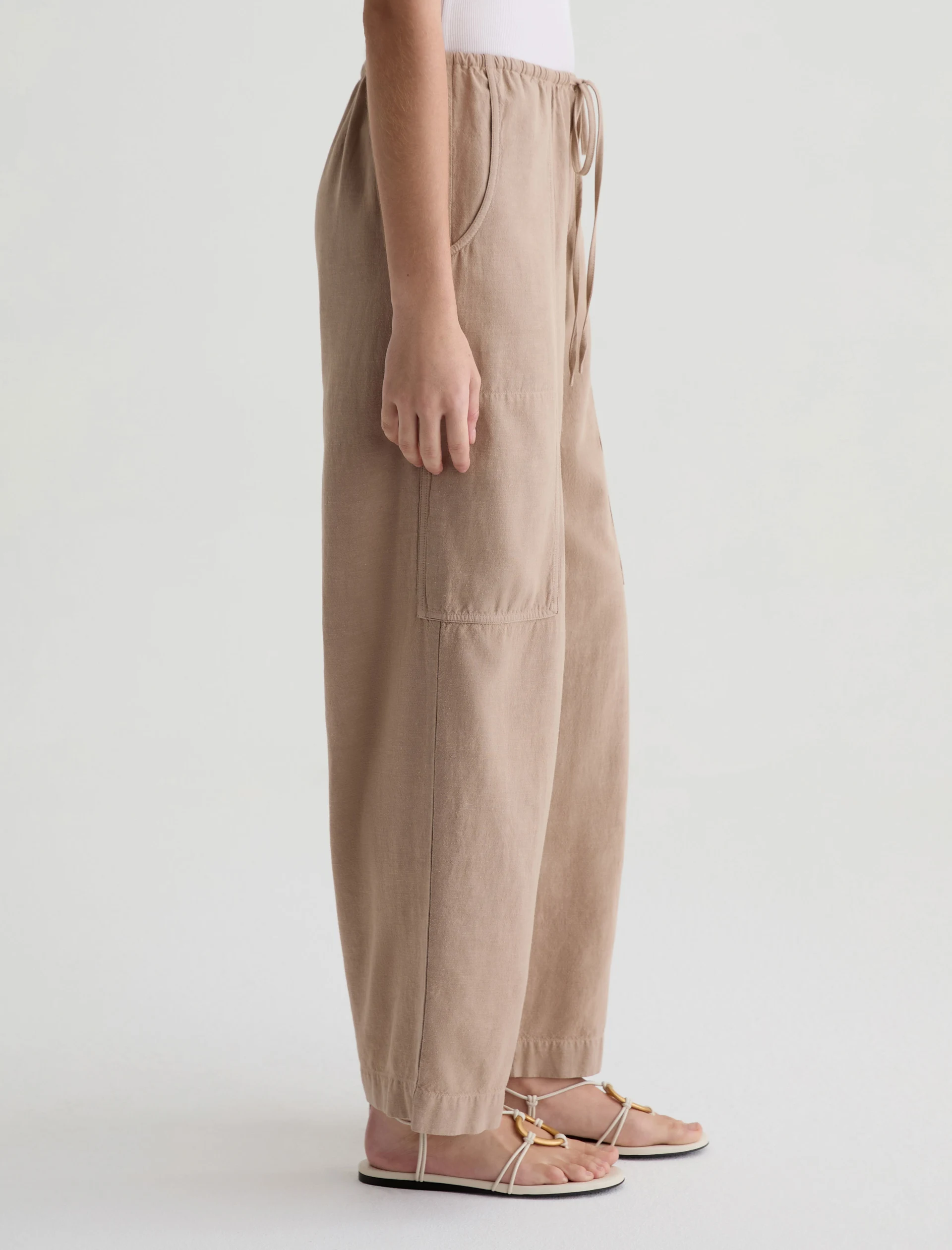 Our Nina is a high-rise, pull-on silhouette crafted from a breathable linen blend for added softness and drape. This Simple Taupe silhouette is designed for all-day comfort, even during your most active moments.