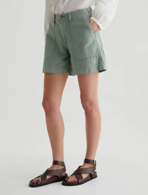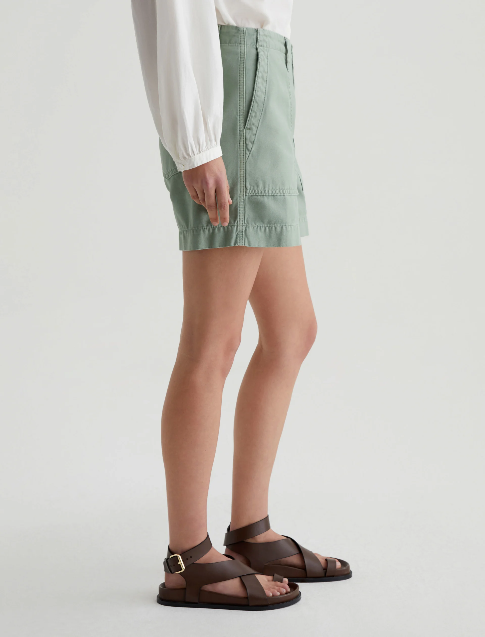 The Rosa mid-rise utility short has a relaxed fit in pale-green Sternway Reverse Sateen. Crafted from 100% cotton, these summer-ready women’s shorts are finished with roomy patch pockets.