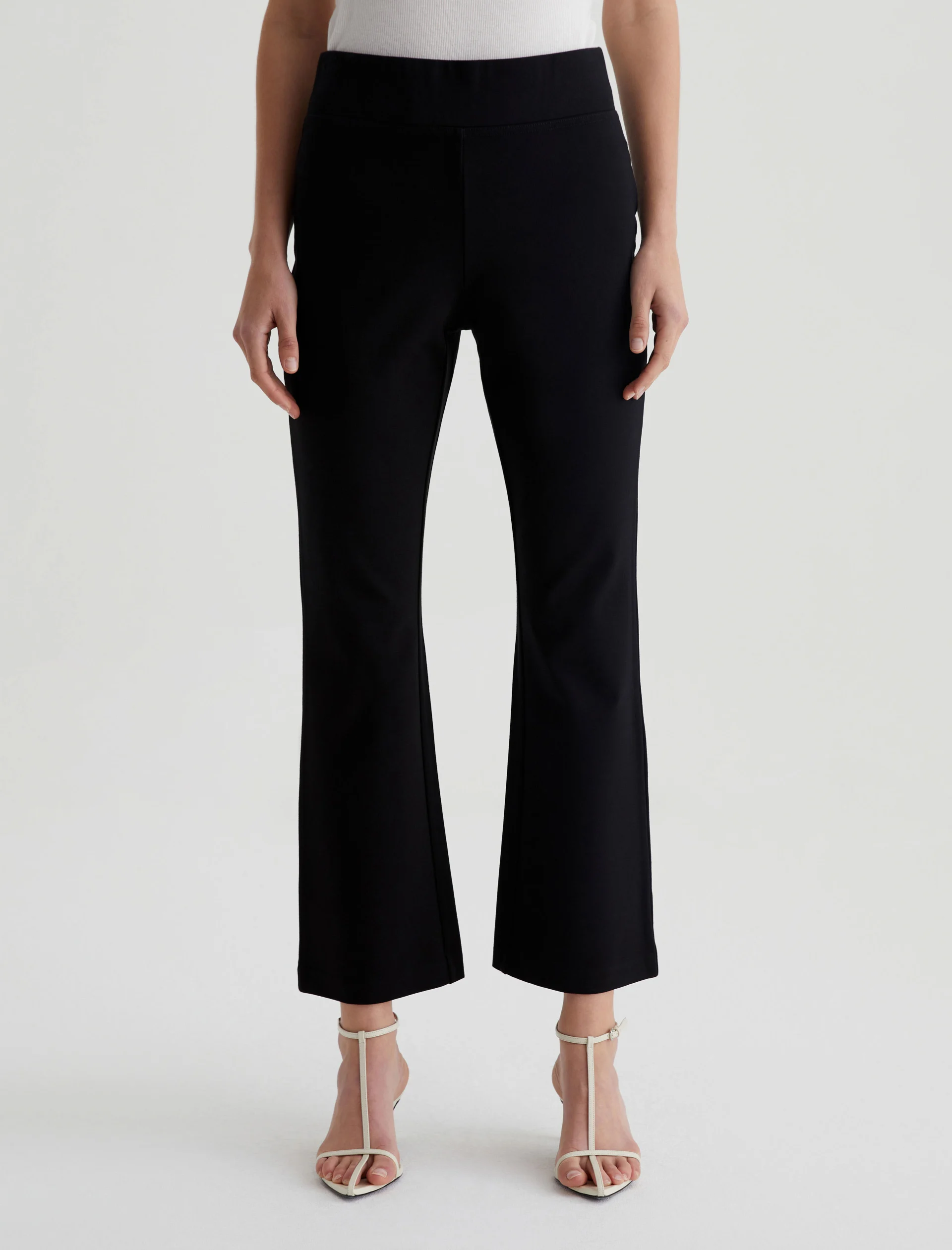 Our Salma pull-on pants have a flared silhouette in soft stretch ponte. Designed with a high waist, these cropped black flares are perfect for easy everyday wear.