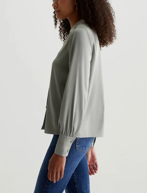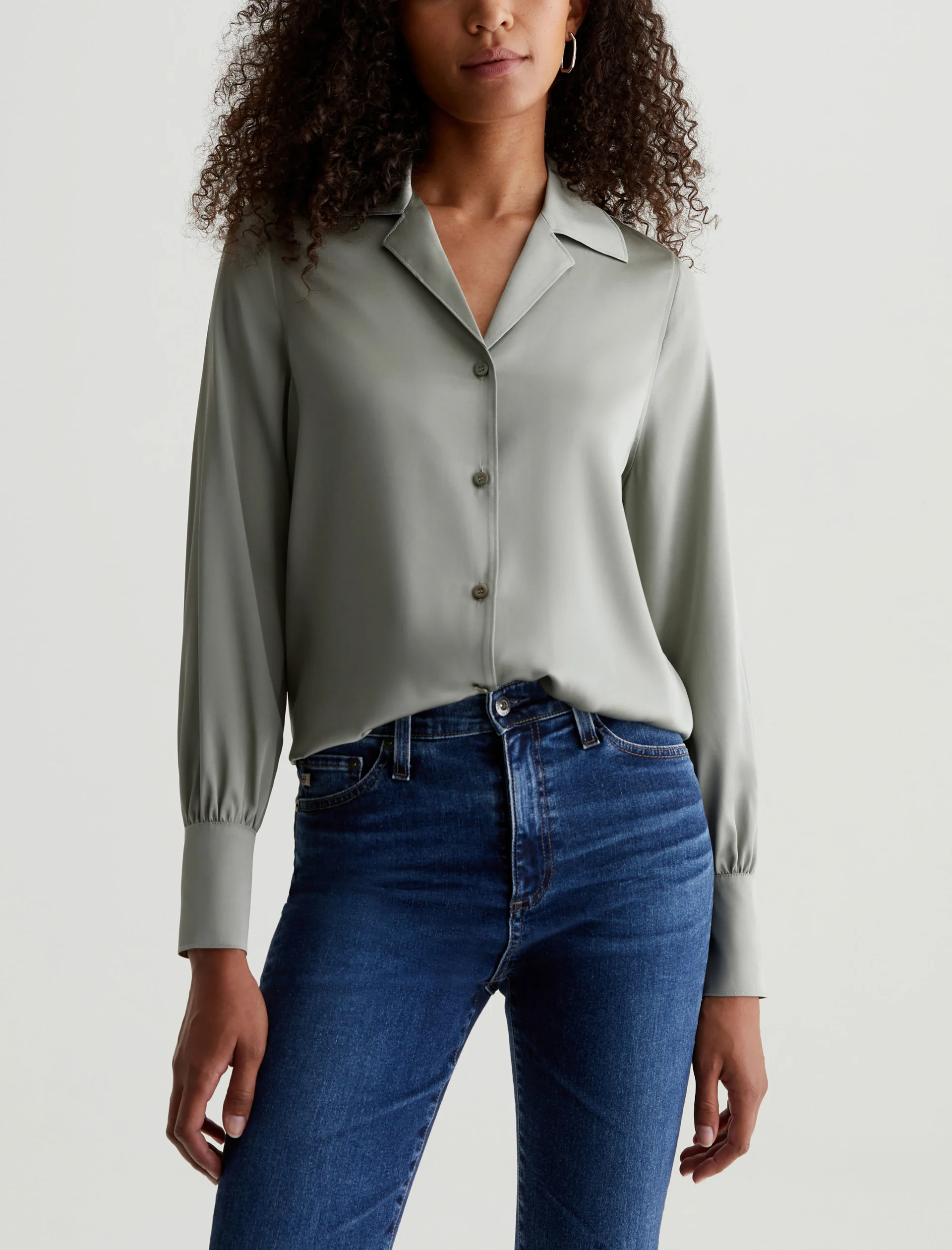 Perfect for any season, the Valerie Blouse is crafted from lustrous silk twill woven with a touch of stretch. A notched collar opens the neckline, while puffed sleeves add subtle volume.