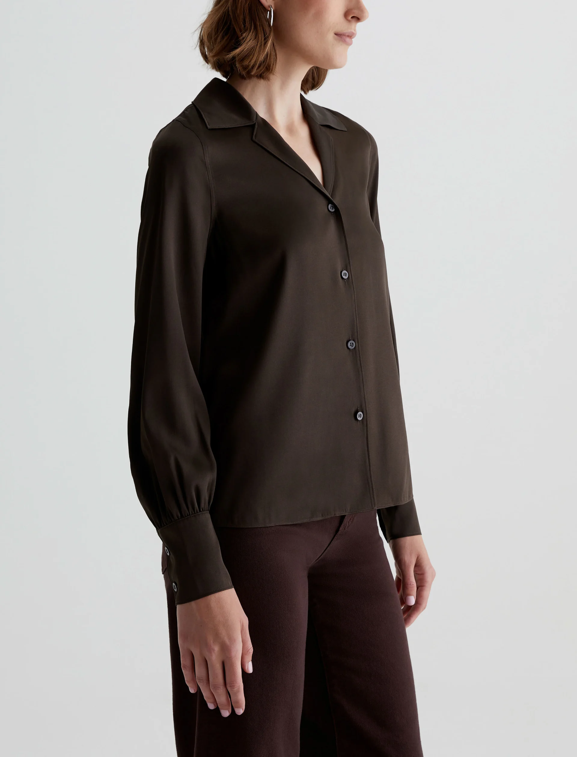 Perfect for any season, the Valerie Blouse is crafted from lustrous silk twill woven with a touch of stretch. A notched collar opens the neckline, while puffed sleeves add subtle volume.