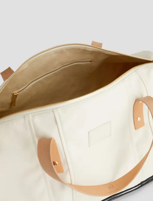 Handcrafted in Italy, this duffle bag is a stylish choice for quick getaways. Designed with contrast paneling, it’s got two external pockets, gold-tone hardware, and leather handles that will develop a unique patina over time. Complete with a zip closure, interior sleeve pocket, and a removable shoulder strap for versa