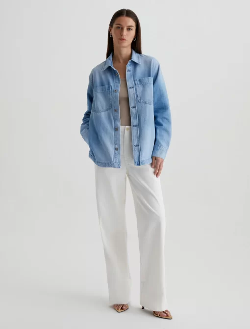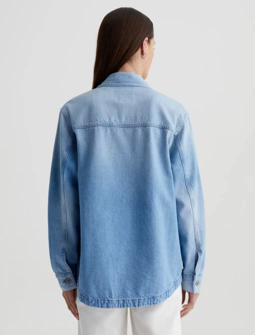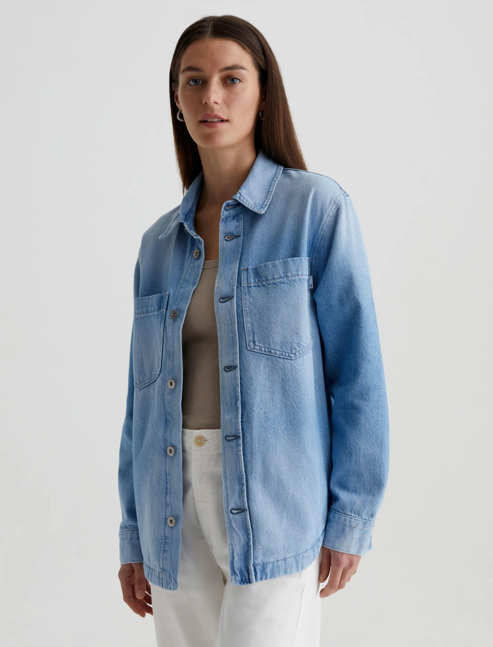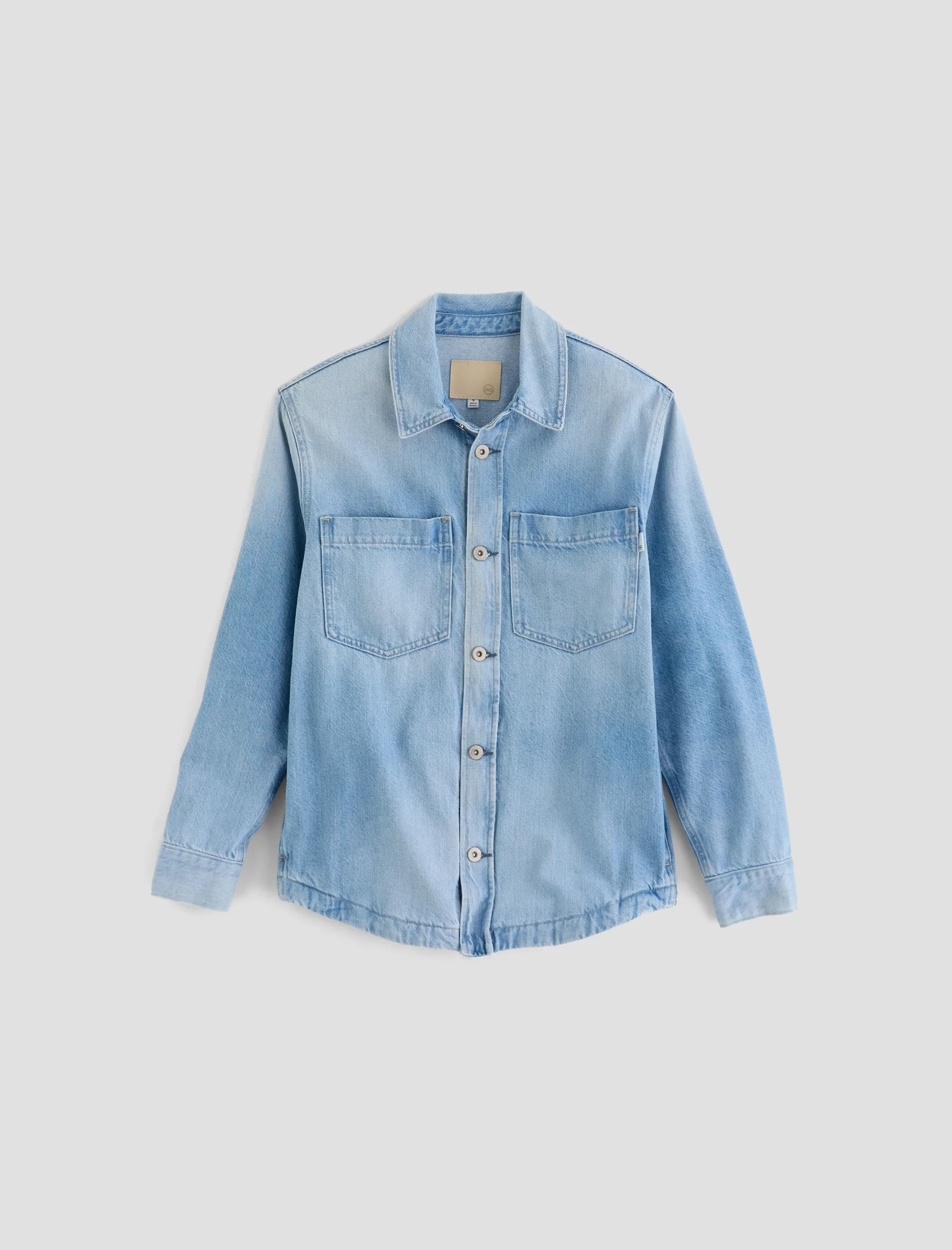 The Vita relaxed-fit shirt jacket brings a sense of ease to your layers. Crafted from 11 oz. Lightweight Rigid Denim, the long-sleeve number features 100% cotton construction in a faded blue wash. Patch pockets and shank fastenings borrow from utility styles, while dropped shoulders give it some slouch.